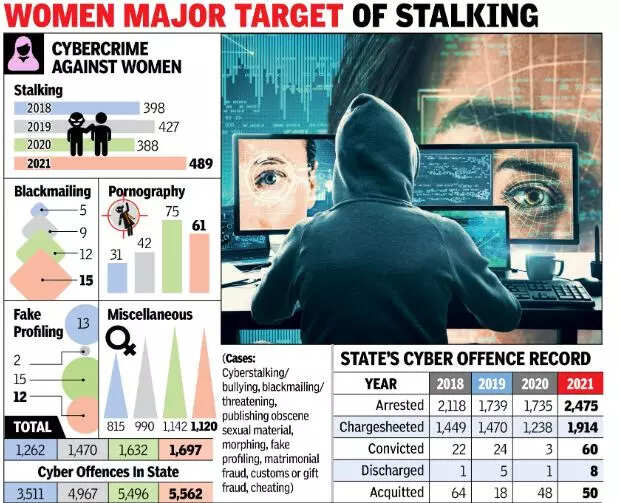MUMBAI: Data released by the NCRB shows that in Maharashtra, blackmailing women online has seen an increase over the last few years. Another interesting data that has emerged from the study is that matrimonial fraud, customs or gift fraud, card fraud, online cheating and forgery account for the maximum number of cybercrime against women. These offences fall under the miscellaneous category, with 815 cases registered in 2018, 990 in 2019, 1,142 in 2020, and 1,120 in 2021.
