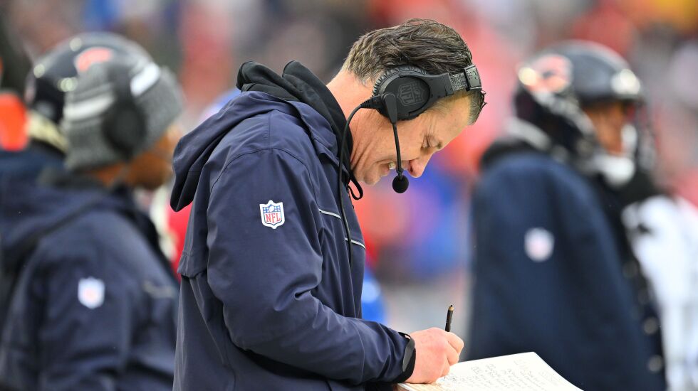Bears coach Matt Eberflus takes notes Sunday. (Getty Images)