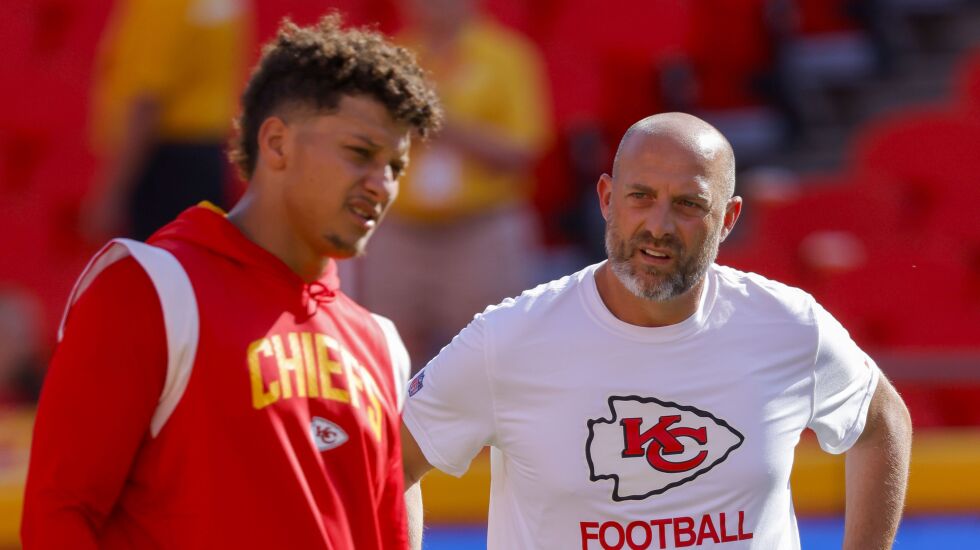 Sunday, Nagy’s star pupil — he was the offensive coordinator when the Chiefs drafted him — will play in his third Super Bowl. For the first time, Nagy will be by his side when they take the field against the Eagles.
