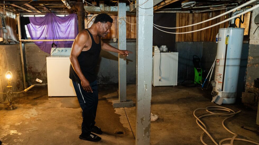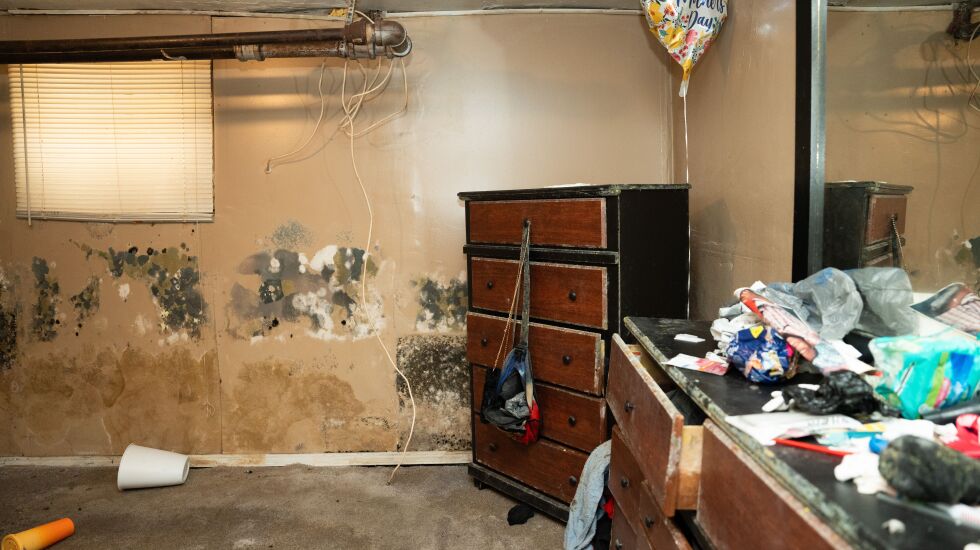 Across the street, Adam Driver has been struggling to clean the mold from his damp basement drywall. He’s been wiping the walls with bleach and water every day, but the mold keeps coming back.