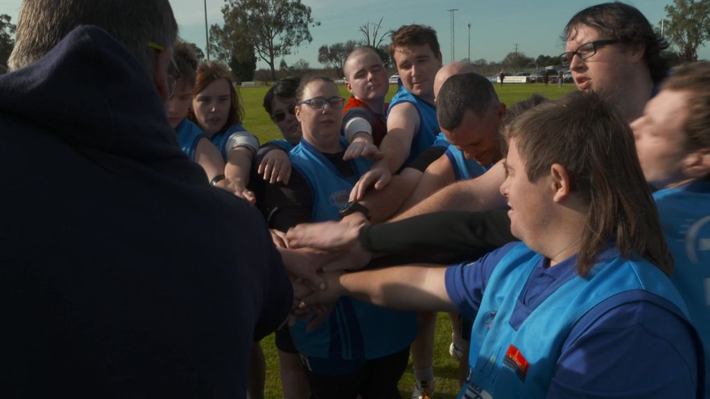 Both men play for the Echuca Moama Rockets, an Aussie rules footy team for players with intellectual disability.