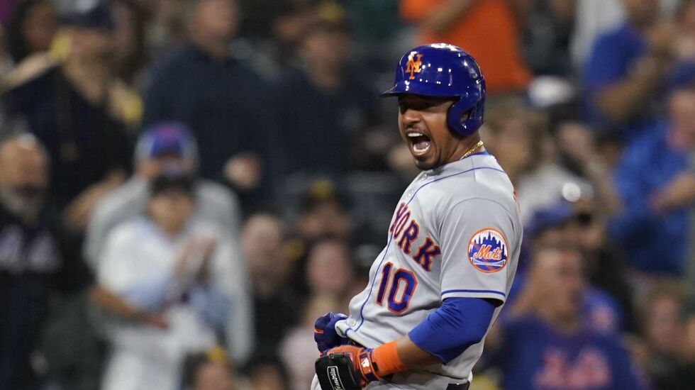Escobar hit a two-run triple with two outs in the ninth inning, giving him six RBIs in boosting Carlos Carrasco and the New York Mets to an 11-5 win Monday night against the San Diego Padres.