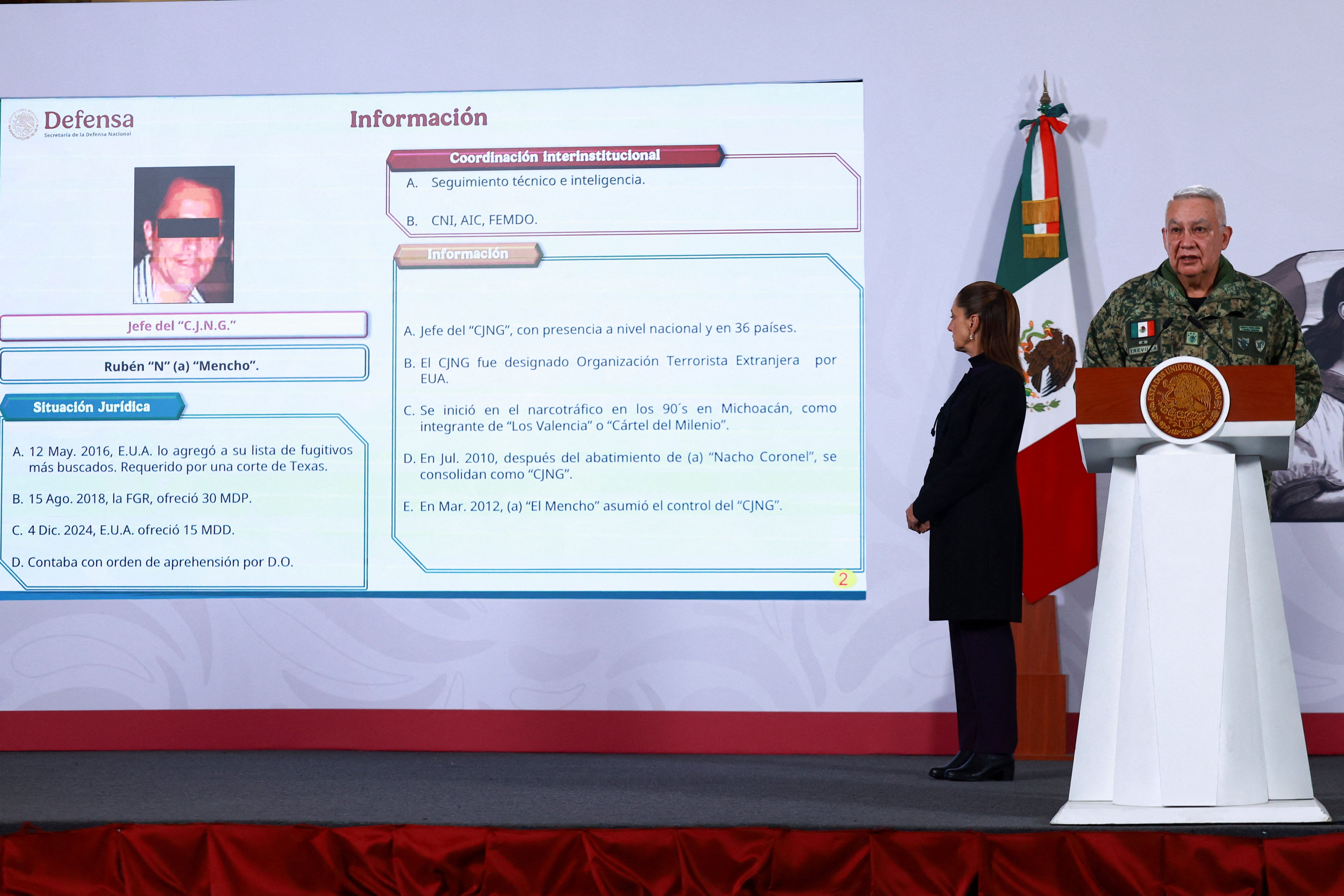 14:40 , Joe SommerladSheinbaum’s defense secretary, General Ricardo Trevilla Trejo, reveals at the press conference that El Mencho’s location was discovered on Friday through a friend of a romantic partner of the drug lord, who was taken to a facility in Tapalpa, Jalisco.