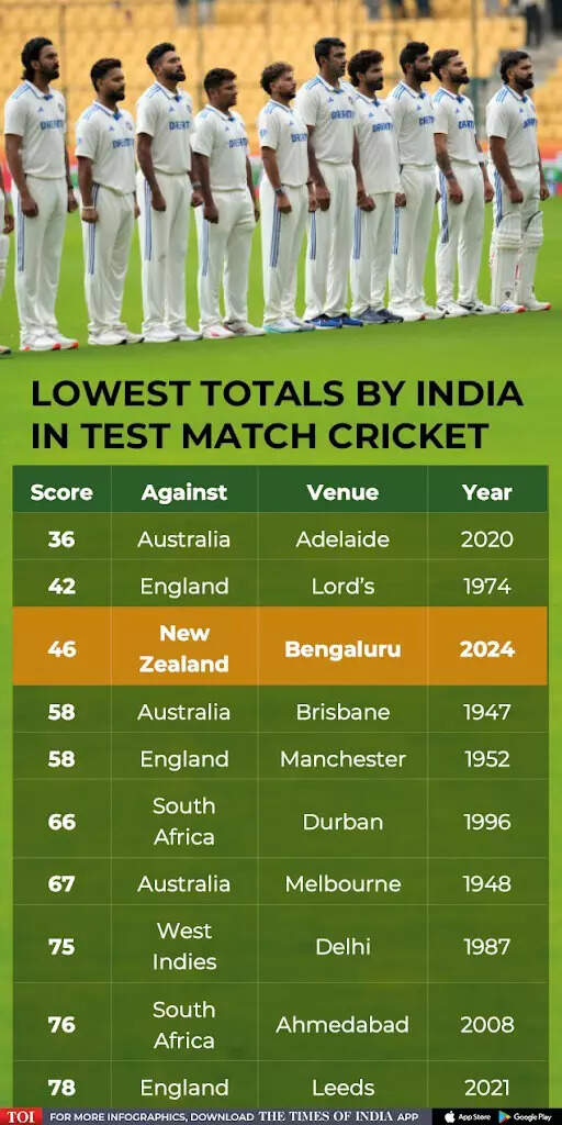 But despite overcast conditions and weather forecast for more rain, India captain Rohit Sharma decided to bat first after winning the toss. It proved to be a disastrous decision as India narrowly avoided their lowest ever Test total of 36, but were still shot out for their worse effort in a Test innings on home soil and third lowest total overall.