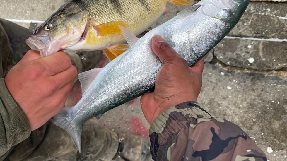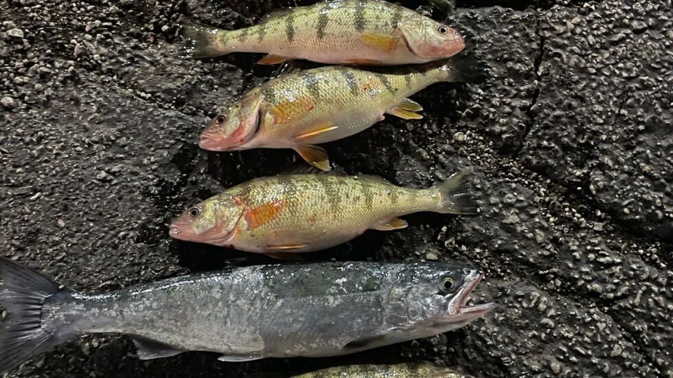 Capt. Dan Leslie at the Salmon Stop in Waukegan said they are catching perch on bigger minnows and the coho bite goes on off the pier. Alewives were all the harbor last week, he said. He caught a two-man limit in a couple hours in 25 feet on a wide variety of presentations, all on flat lines.