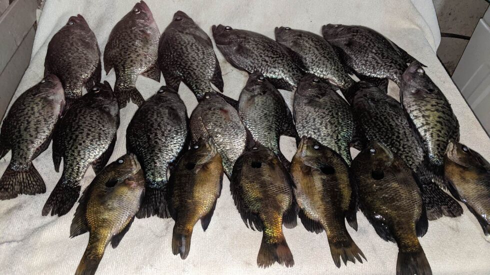 Arden Katz said bluegill continue outstanding in the channels, which were around 50 degrees on Monday, on spikes and 1/64th-ounce jigs.