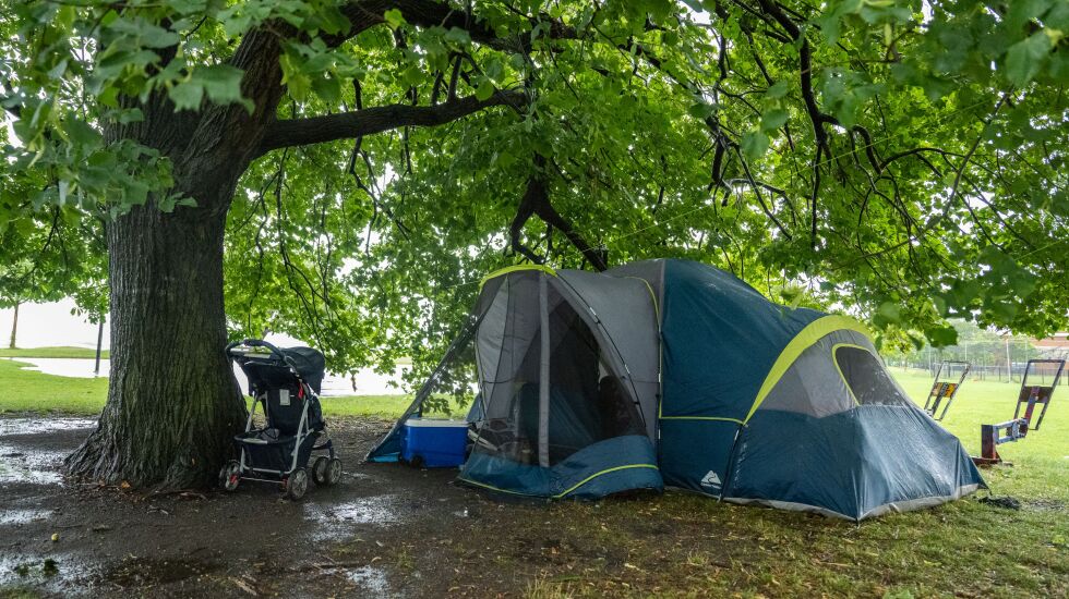 The two families had been sleeping in two donated tents at Loyola Park since being asked to leave the Super 8 Motel at Sheridan Road and Chase Avenue on Saturday after missing an 11 p.m. curfew by seven minutes the night before, according to Alejandra Leon.