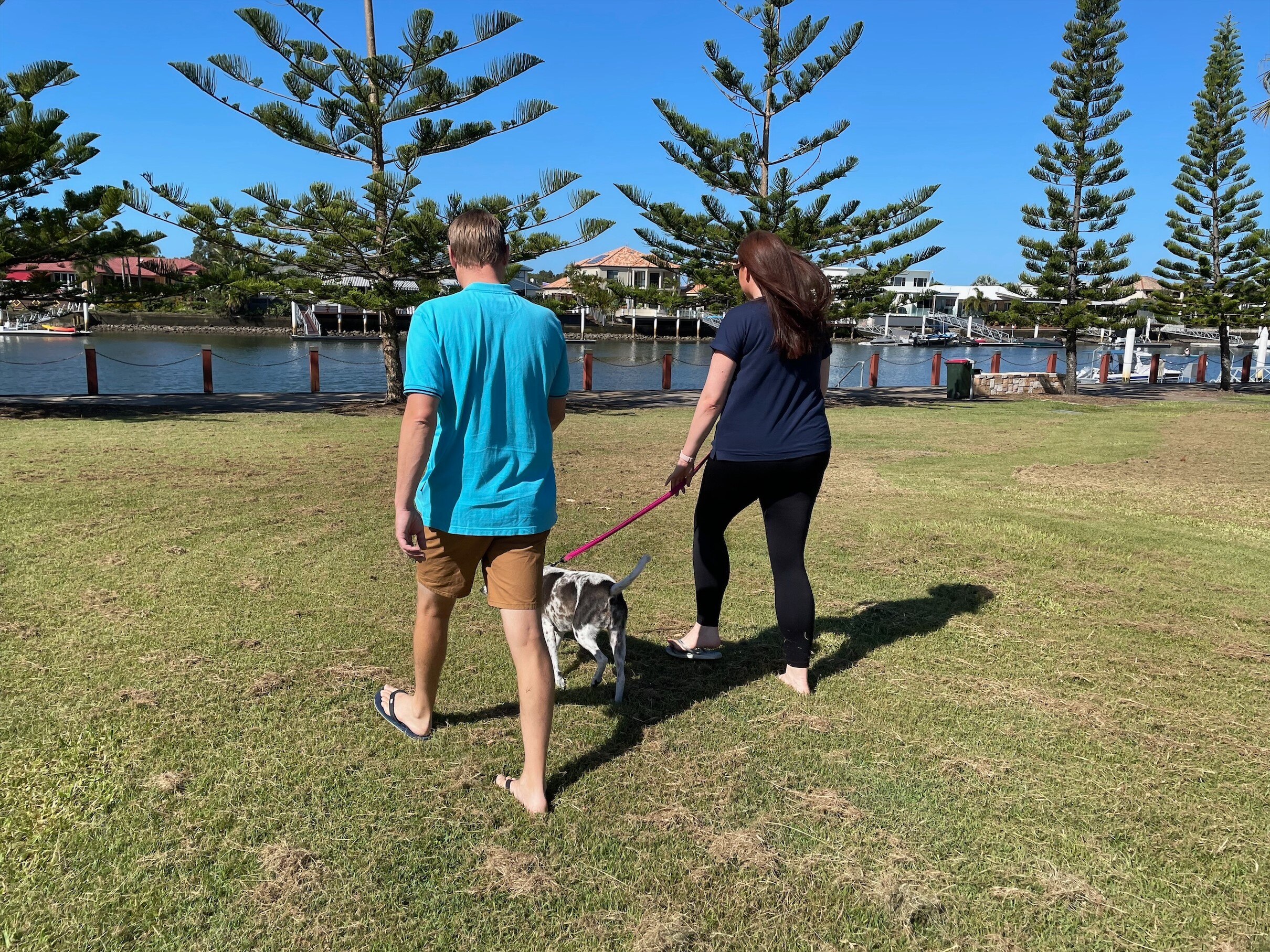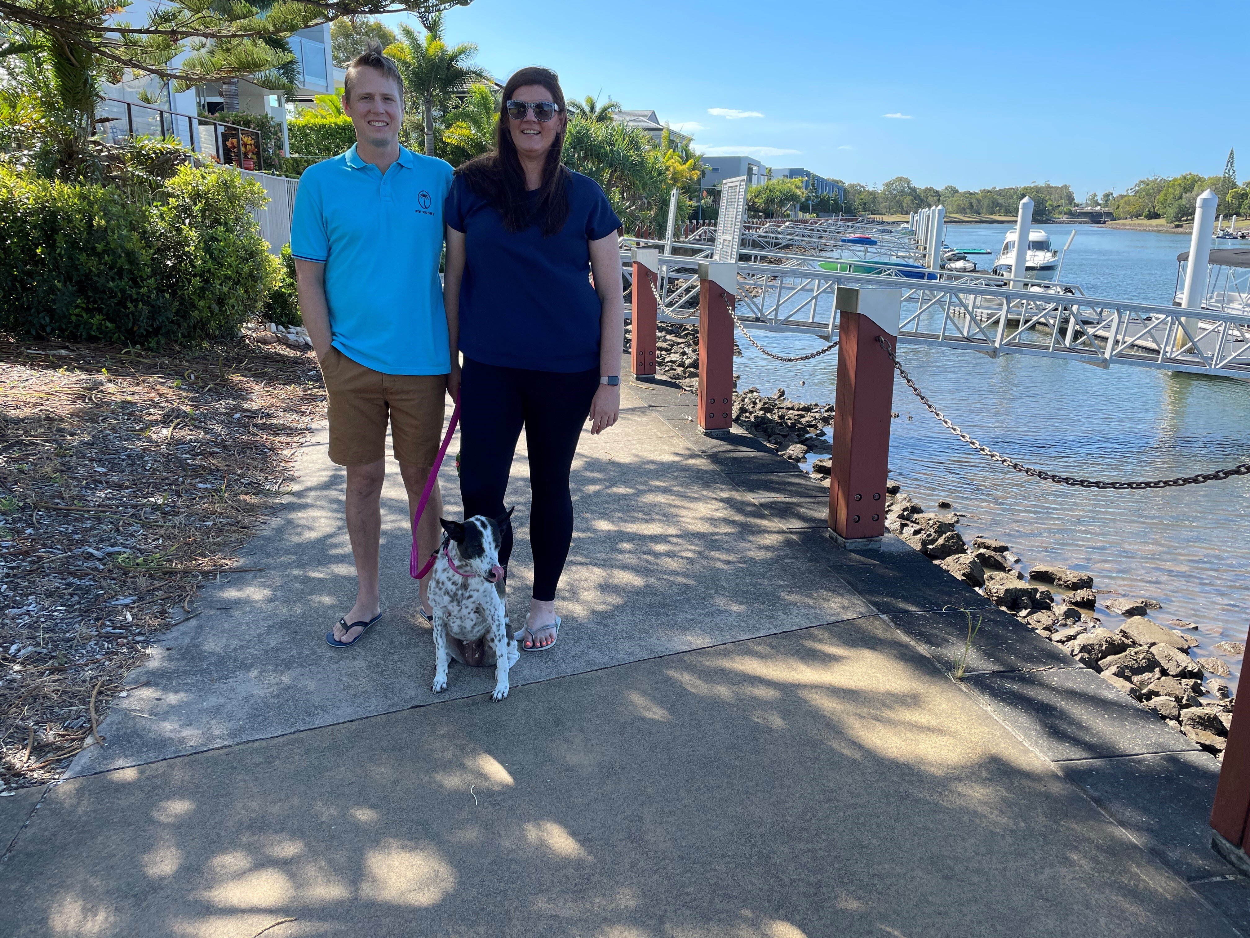 Owner Natasha Corbin said for the first time in Munchkin's life, the pooch's future was certain as she settled into life on the Sunshine Coast with her co-owner David Daynes.