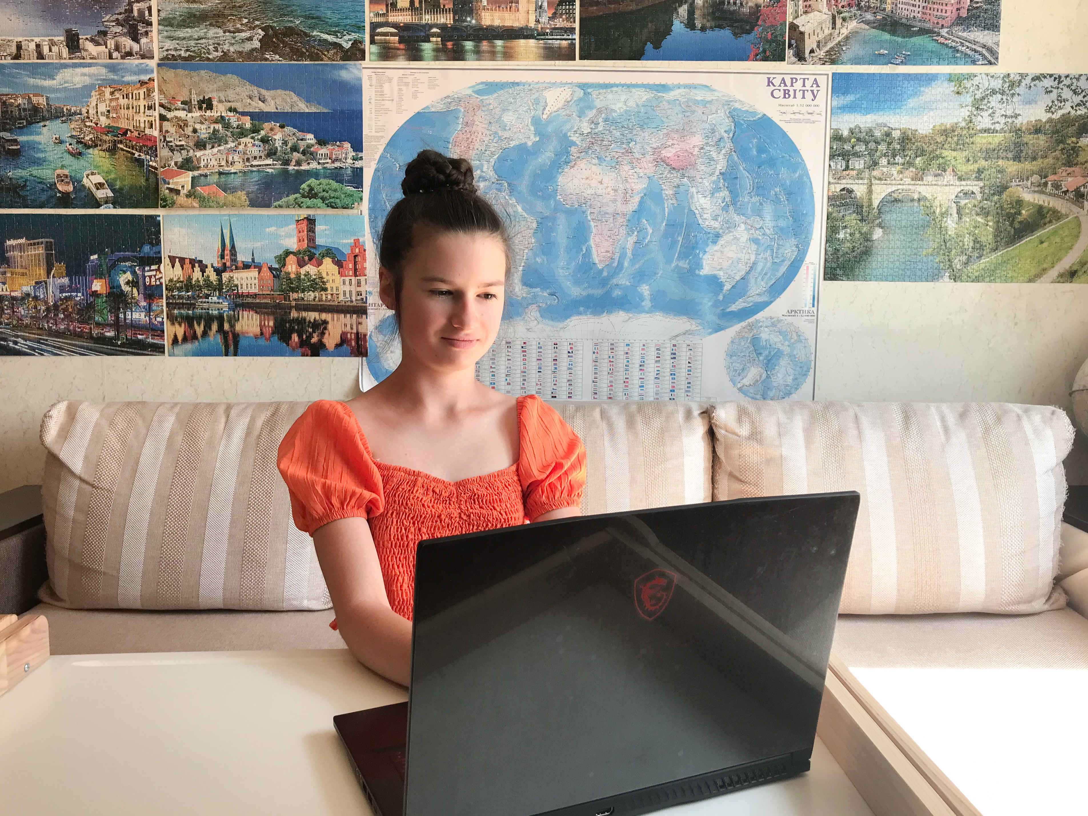 The 12-year-old takes two to five online classes a day from her home in Kiev about anything from atmospheric science to how to practice yoga.