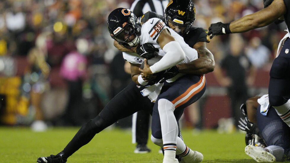 A whirlwind week for Sweat played out bout as expected Sunday. Sweat started against the Saints, four days after arriving in Chicago following a trade with the Commanders. He played a starter’s complement of snaps in the defensive end rotation, pressured David Carr into an incompletion on third down and showed some hustle chasing down quarterback Taysom Hill from behind after a 13-yard gain on another play. But he couldn’t prevent the Bears from losing and falling to 2-7.