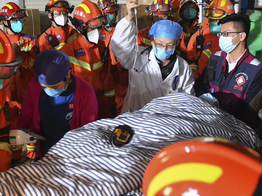 The official Xinhua News Agency said a man and a woman were pulled out on Monday afternoon and early Tuesday morning.