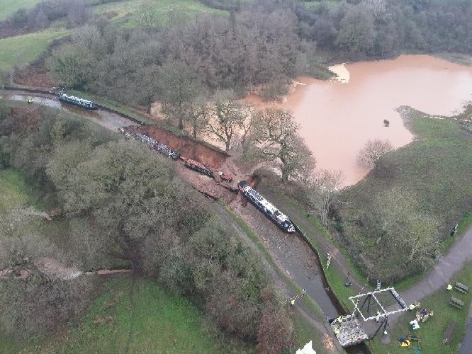 The Canal and River Trust said it had dammed off the impacted section of the canal, and had closed off the area while an investigation was carried out into the cause of the breach. The trust said it was also providing support to boaters who had been impacted.