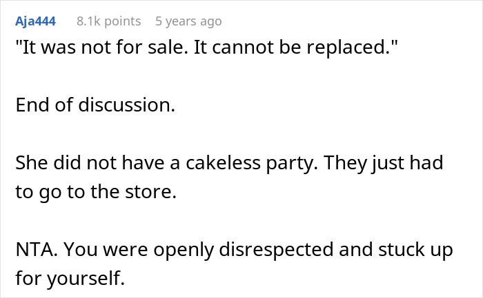 Netizens sided strongly with the OP, emphasizing that paying for something without permission doesn’t make it yours. Others highlighted how this incident revealed deeper flaws in the friendship and family dynamic. What would you have done if you were in the OP’s shoes? Would you have also walked out with the cake, or handled the situation differently? We would love to know your thoughts!