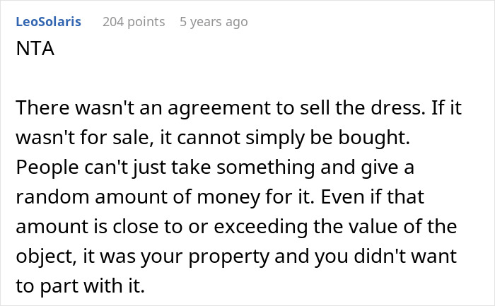 Beyond legality, there’s also the emotional layer. As noted by Mindful Spark, dismissing someone’s attachment to personal belongings can chip away at trust and closeness. Even if the dress didn’t hold deep sentimental value, it still represented memories and personal choice. Minimizing that attachment by saying “it’s just a dress” can feel invalidating because of what it symbolizes to the person who owns it.