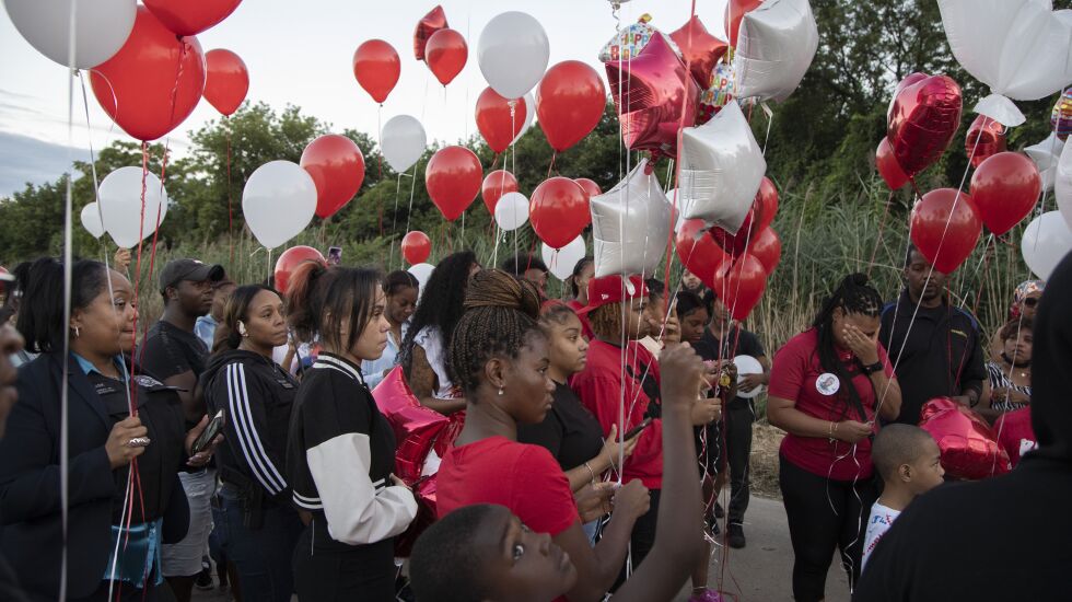 Myron Richardson often bought his mother roses, so his friends and family stood on Doty Avenue on the Far South Side recently holding bunches of red and white balloons on what would’ve been his 21st birthday.