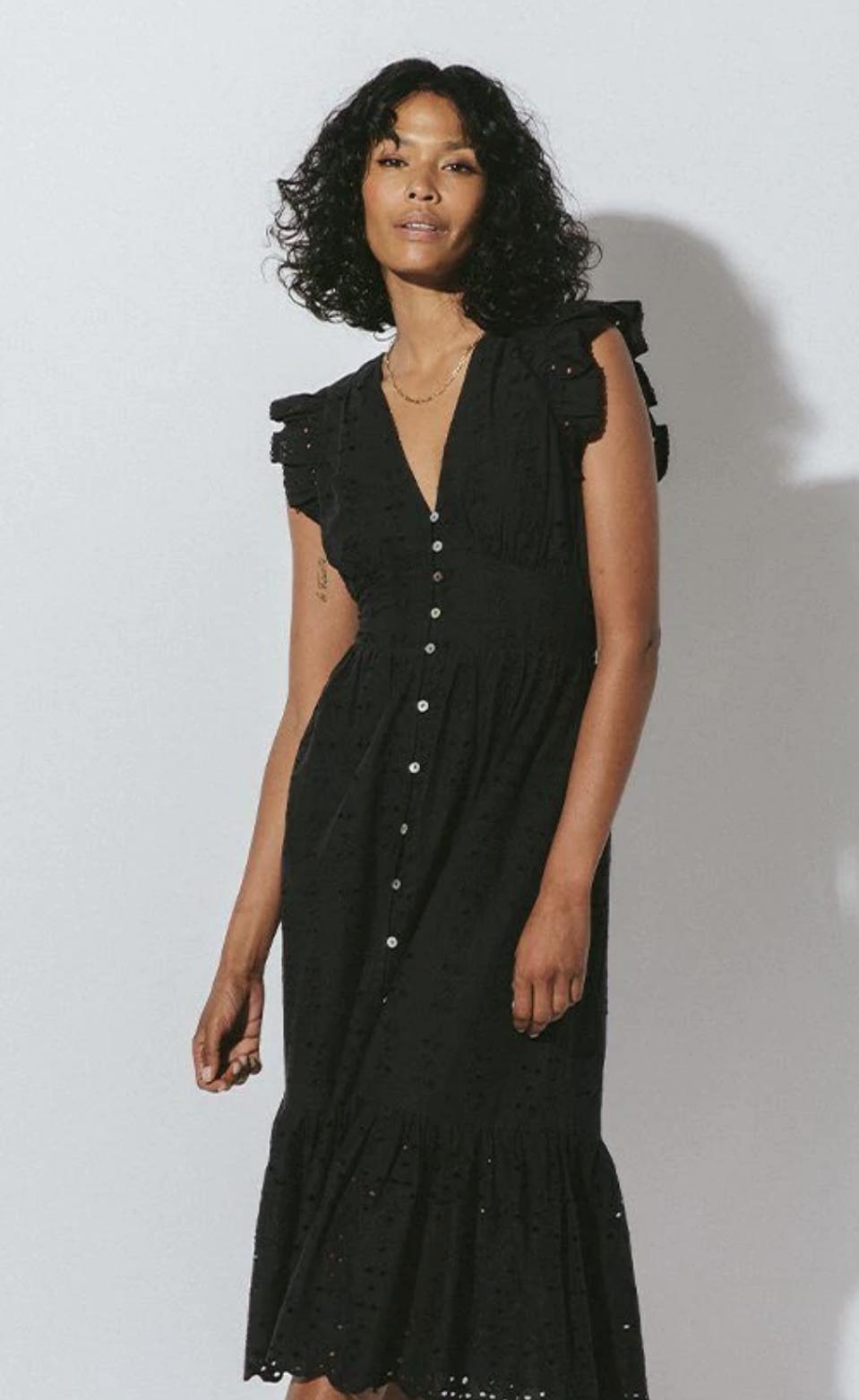 With sustainability in mind, all items in the Cleobella line are ethically made by independent artisans from around the globe. Cottons used in the fabrics are derived from certified organically produced raw materials. The black handmade Brielle Midi Dress, $208, is a great choice for travel because it can be dressed up or down, depending on what shoes and jewelry you wear, and the eyelet ecofriendly fabric gives the dress a timeless feel. Wear to dinner or while exploring the shops and markets—this dress will quickly be your go-to item in your suitcase.