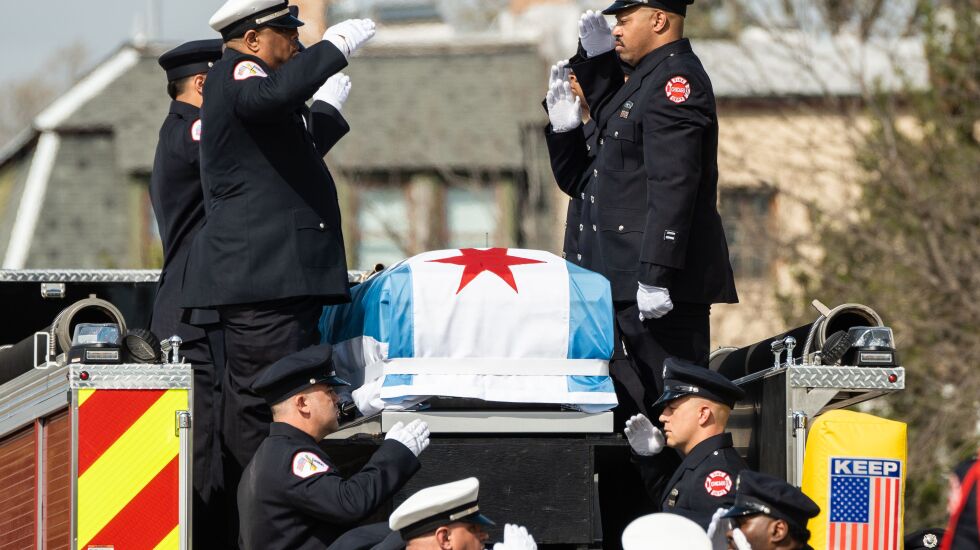 Hundreds of people, including scores of uniformed firefighters and police, attended the service at House of Hope, 752 E. 114th St., a megachurch in the Pullman neighborhood.