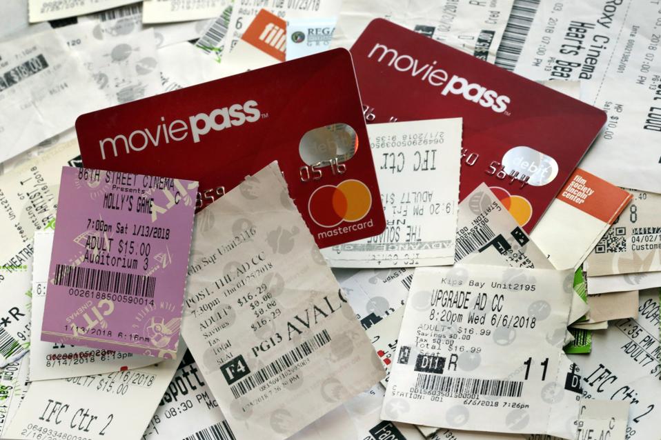 This Aug. 23, 2018, file photo shows Movie Pass debit cards and used movie tickets in New York. The company that runs the beleaguered MoviePass, a discount service for movie tickets at theaters, is being investigated by the New York Attorney General on allegations it misled investors. ASSOCIATED PRESS