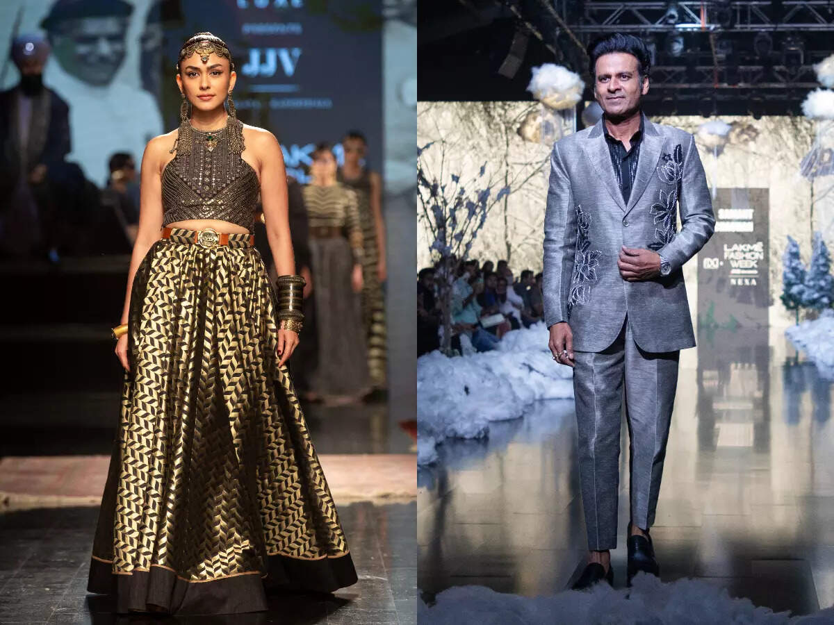 Day 1 of the FDCI X Lakme Fashion Week turned out to be a star-studded affair. Two big stars of the Indian film industry, Manoj Bajpayee and Mrunal Thakur turned showstoppers for two big shows of the day.