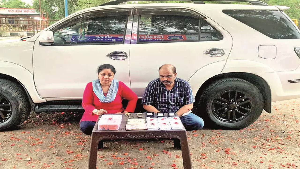 Police arrested Ibrahim Hussain Odiya, (51), and his wife Tanvir Ibrahim Odiya (47), both residents of Taili Mohalla near J J Hospital in Mumbai. The accused duo were caught from Niyol police checkpost on Surat Kadodara road based on specific information. Police also seized Rs 2.12 lakh in cash from them besides an SUV worth Rs 10 lakh.