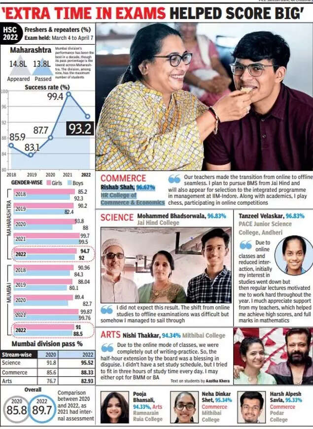 MUMBAI: A batch that spent its junior college years away from campus has graduated to university life with a success rate of 93.2% in the state. Mumbai division recorded the lowest pass percentage at 89.7% across Maharashtra, and yet its performance has been the best in the past decade, barring 2021, when it was a no-exam year.