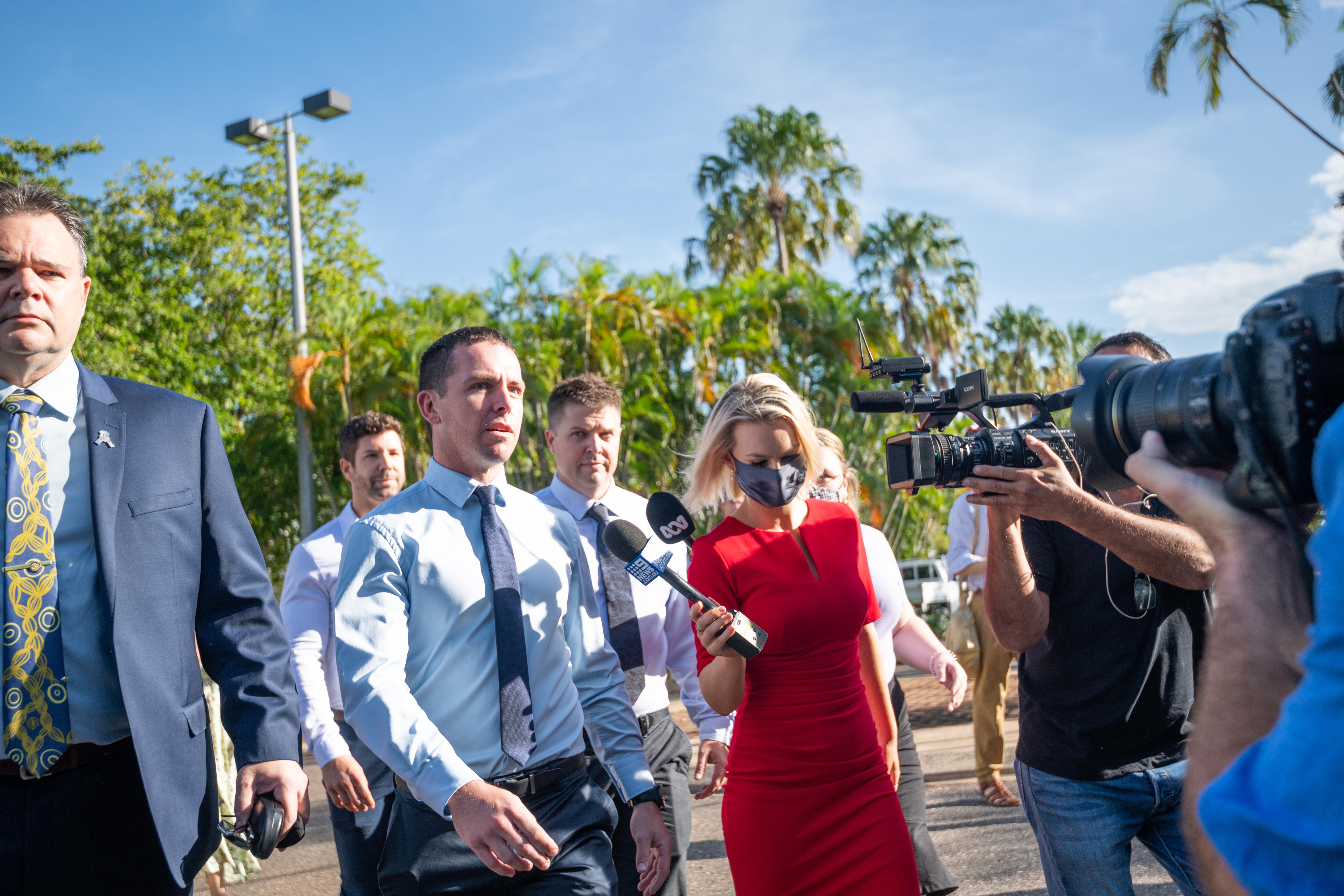 Among them was Constable Zachary Rolfe, who was walking with the leader of the local police union and about to stand trial for murder. In front, a wall of media, waiting for the historic case to begin.
