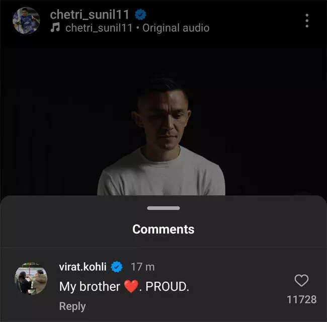 Commenting on Chhetri's video post on Instagram, Kohli wrote: "My brother. Proud."