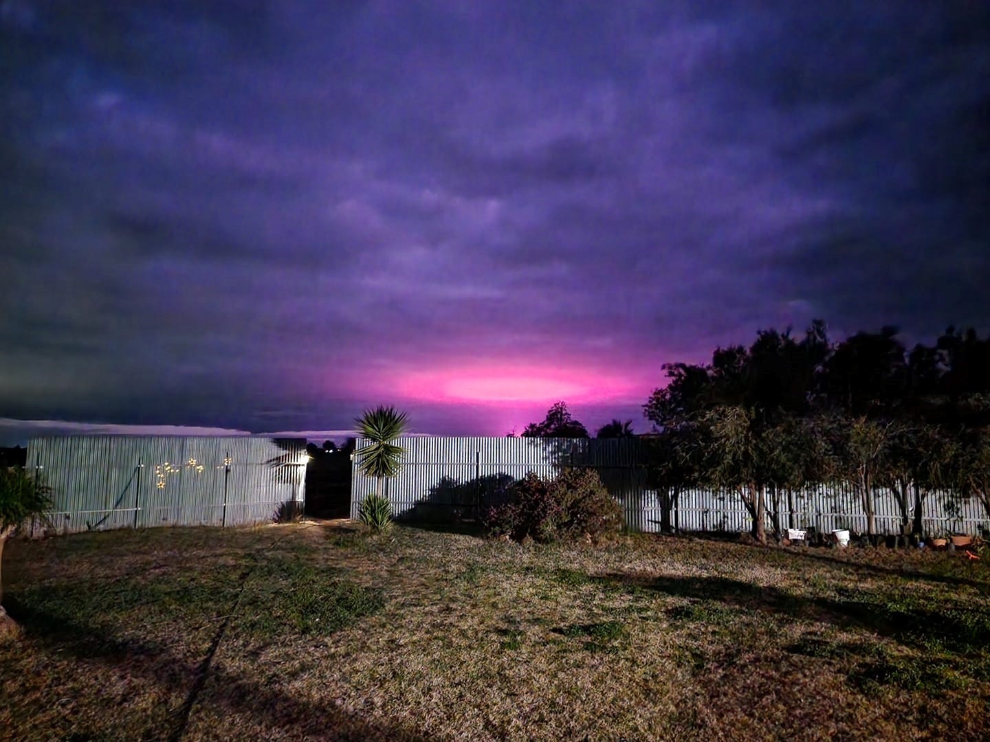 An eerie pink light rippled across the cloudy night sky in Mildura on Tuesday night, sending the town's rumour mill into overdrive.