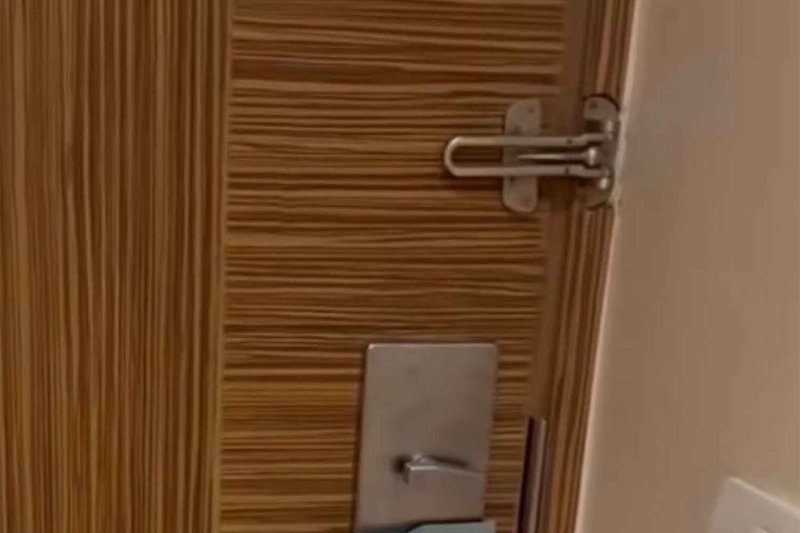 The latch that saved the woman DJ from an intruder, at her hotel room in Phuket.(screenshot)