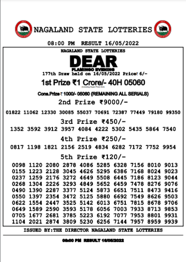 The lottery results will be declared at 8pm. You can check the Nagaland State Lotteries May 16 results below. Result of the May 17 draw once declared will be available on official website.