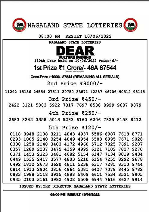 Nagaland Lotteries results: Dear Vulture Evening results are below