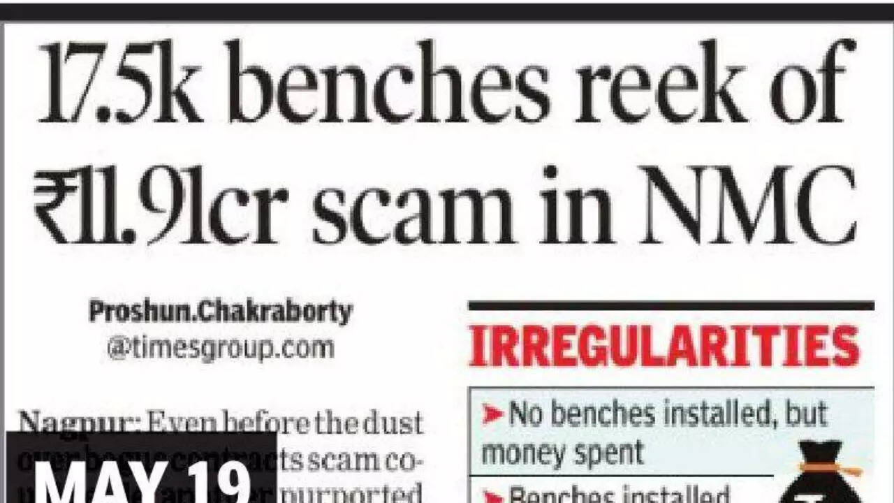 TOI was the first to expose the scam on how NMC spent over Rs11.91 crore for installation of 17,562 benches (both concrete and iron) across the city in the last three years (2019-20, 2020-21, 2021-22).
