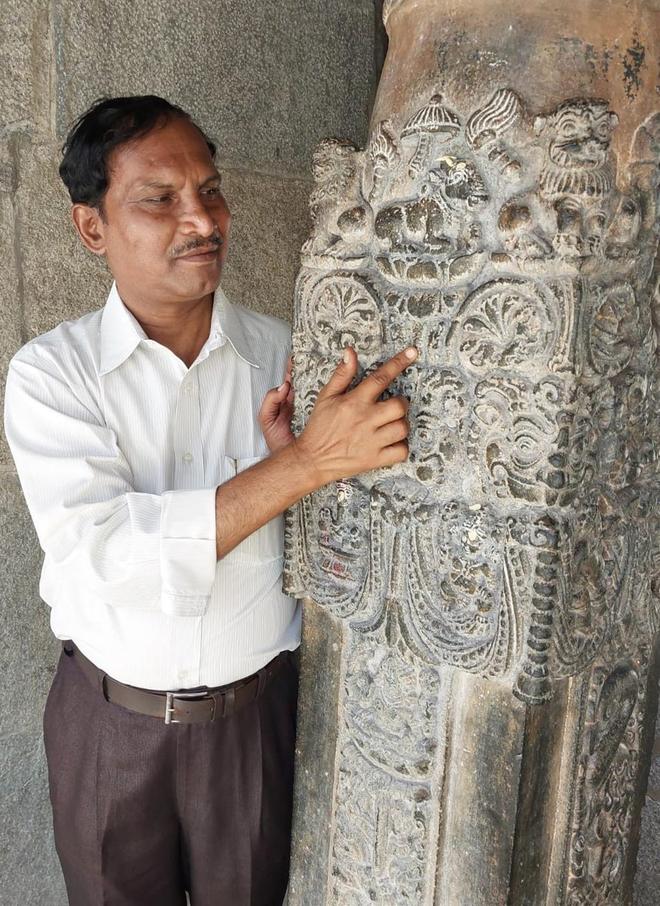 During his visit to the Siddheswara Swamy temple at Hemavati in Amarapuram mandal of Sri Sathya Sai district, he told The Hindu that the Nolamba emblem was etched/sculpted on a pillars of the Mandapam (open hall) of the temple. Mr. MyNaa Swamy researching the Nolamba Pallava sculpture said they ruled parts of present-day Andhra Pradesh, Karnataka, and Tamil Nadu, with Hemavati (Henjeru) as their capital until 1052 CE from 730 CE.