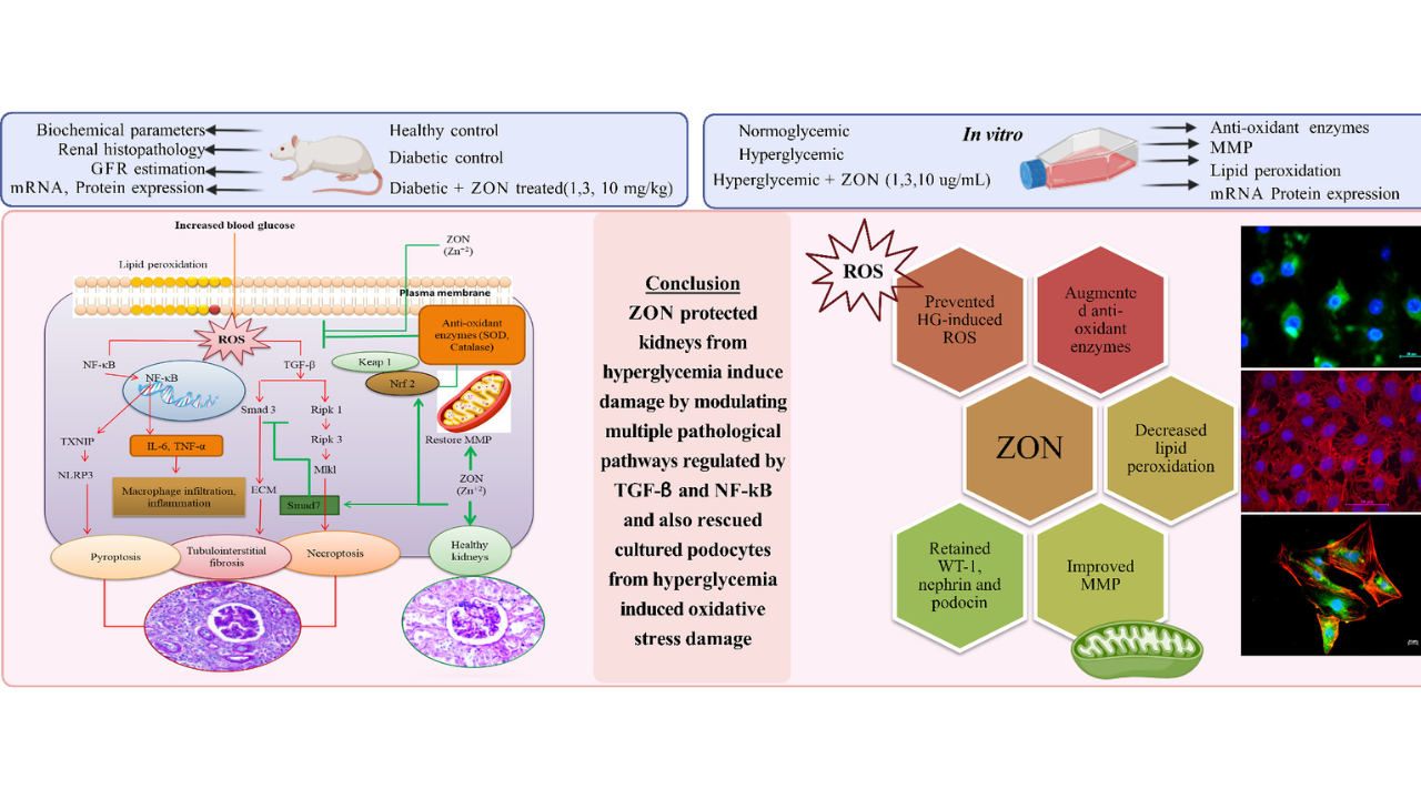 "Zinc deficiency is strongly correlated with prolonged diabetes mellitus and diabetic nephropathy (DN). Previously, glucose-lowering, insulinomimetic, and β-cell proliferative activities of zinc oxide nanoparticles (ZON) have been reported. Considering these pleiotropic effects, we hypothesized that ZON modulates multiple cellular pathways associated with necroptosis, inflammation, and renal fibrosis, which are involved in progressive loss of renal function," the researchers have said.
