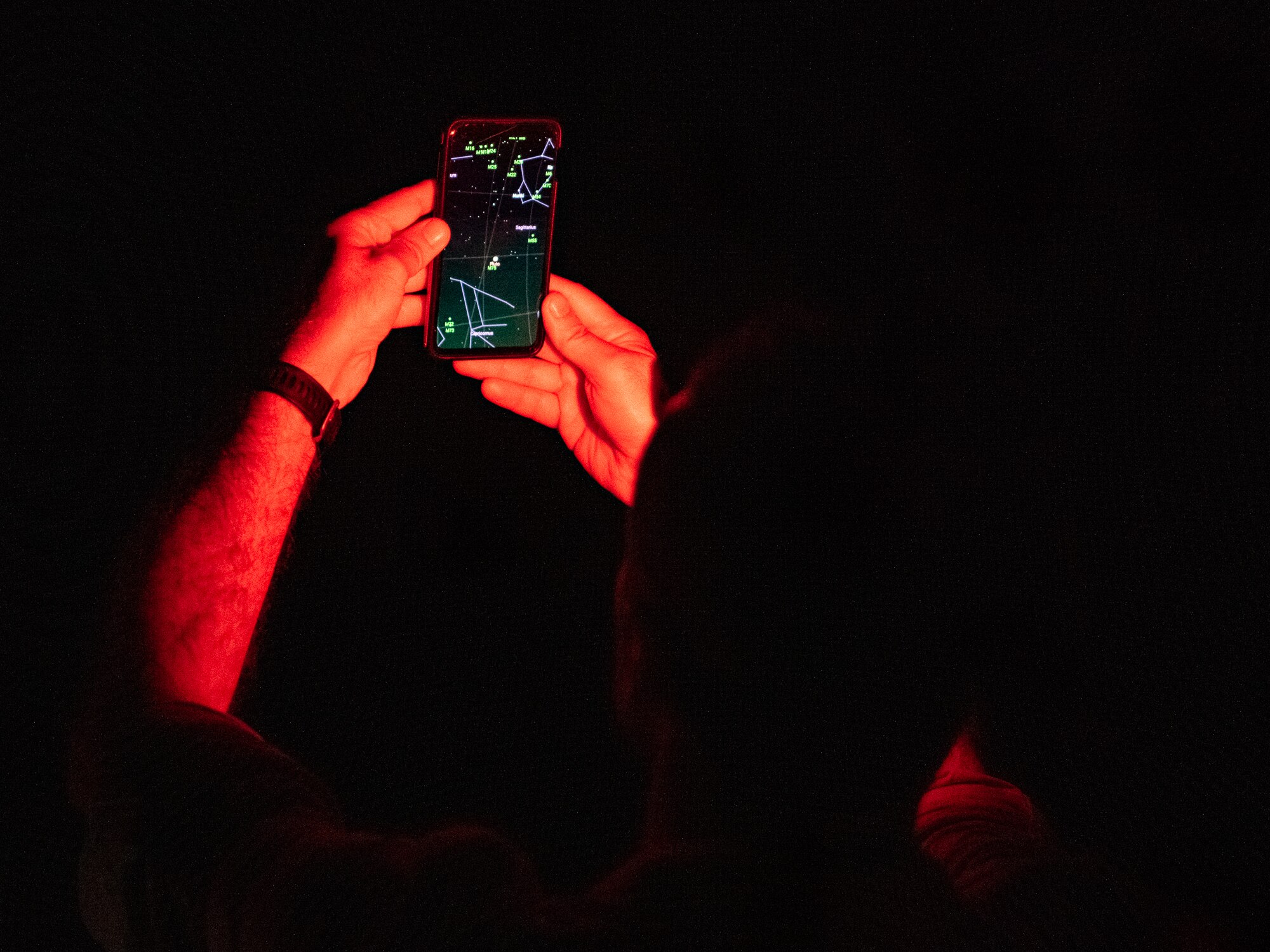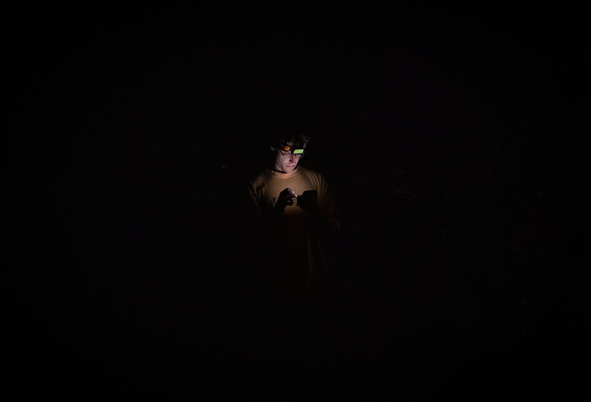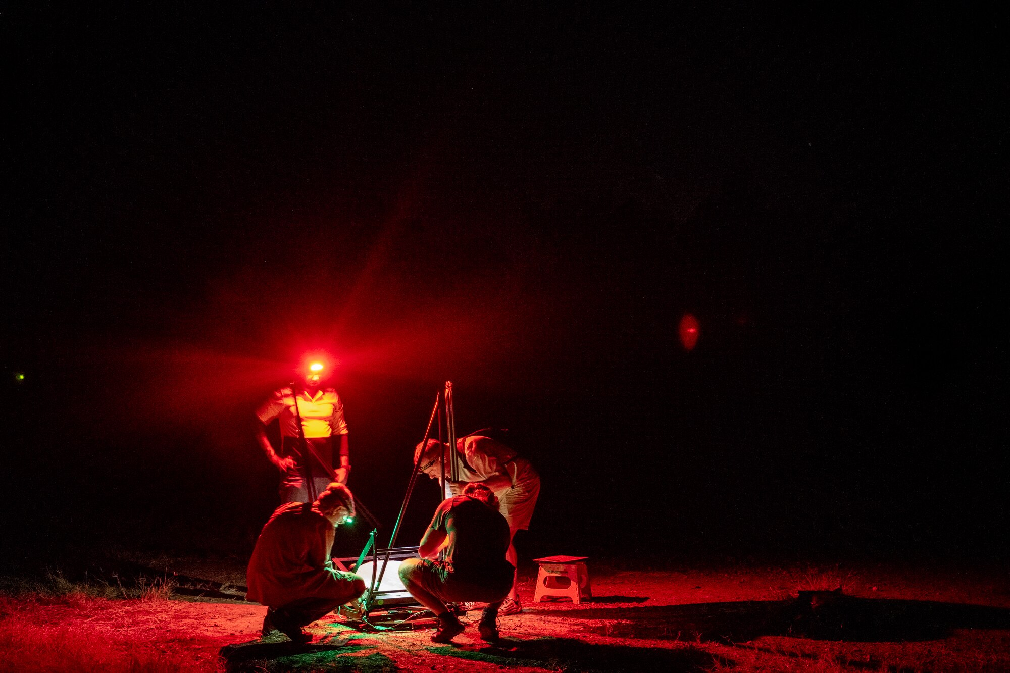 As they finish — and the four-wheel drives lining the paddock cut their engines — the field descends into total darkness. The only lights now are from headlamps and the glow of phones and laptops.