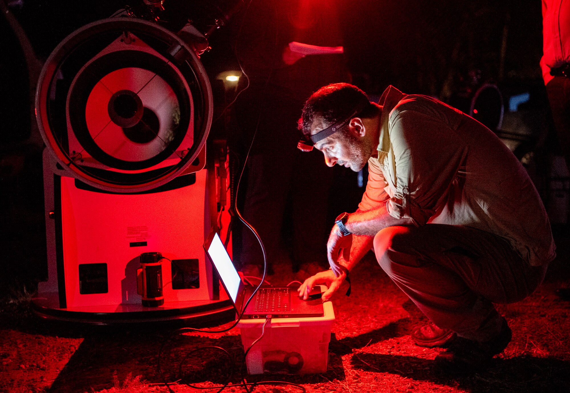Each telescope needs to be run by a team of two or three people. And, within a couple of hours of this practice run, almost all of them are up and running.