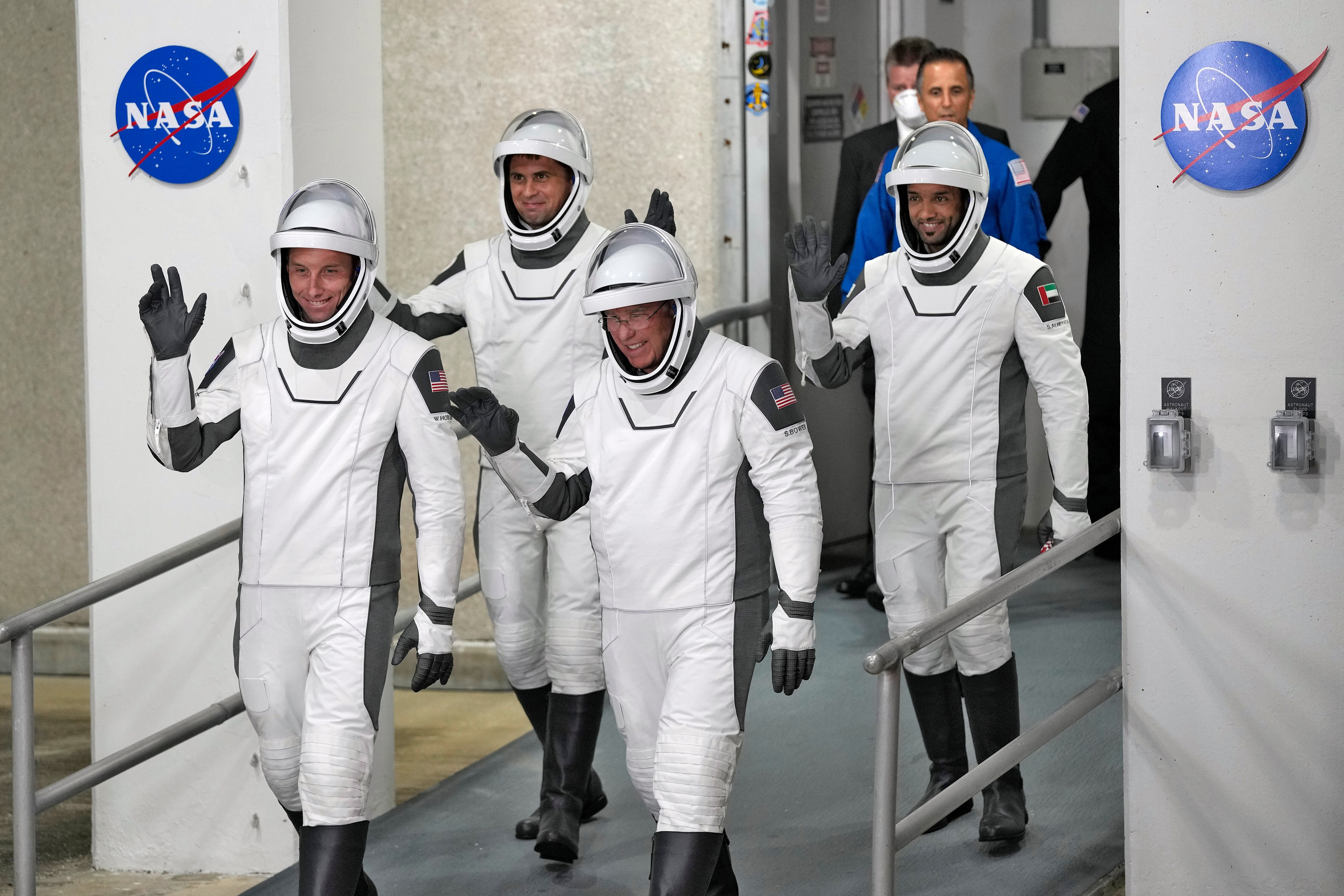 Strapped into the Endeavour capsule atop the Falcon 9 rocket were two NASA astronauts, one Russian cosmonaut and one astronaut from the United Arab Emirates.