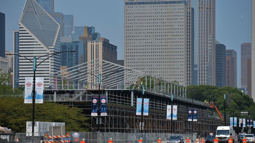 With less than two weeks to go until the green flag drops, NASCAR’s Chicago Street Race course is taking shape around Grant Park.