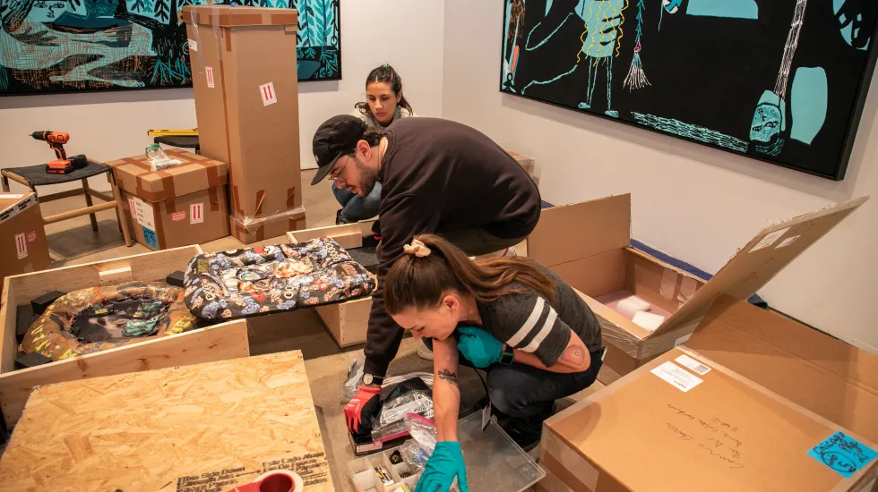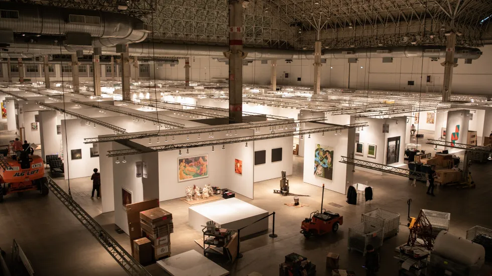 Inside Festival Hall at Navy Pier, art handlers, gallery employees and artists are busy setting up. Art pieces are delicately unwrapped. Large crates are rolled from one booth to another. Nails are hammered into walls, soon to hold a diverse array of paintings, installations and other artwork.