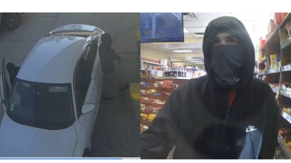 The videos show three people in a white sedan at a gas station shortly before the shooting. All three people are seen wearing face coverings with dark hoodies and dark pants. Police described them as weighing about 160 pounds to 180 pounds and between 5 feet, 10 inches and 6 feet tall.