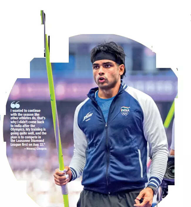 “I wanted to continue with the season like other athletes do, that’s why I didn’t come back to India after the Olympics. My training is going quite well, and the plan is to compete in the Lausanne Diamond League first on Aug 22. After that, if everything goes well, I will compete in the rest two (Zurich and Brussels) and hopefully end the season on a high by winning the 2024 title,” Neeraj said.
