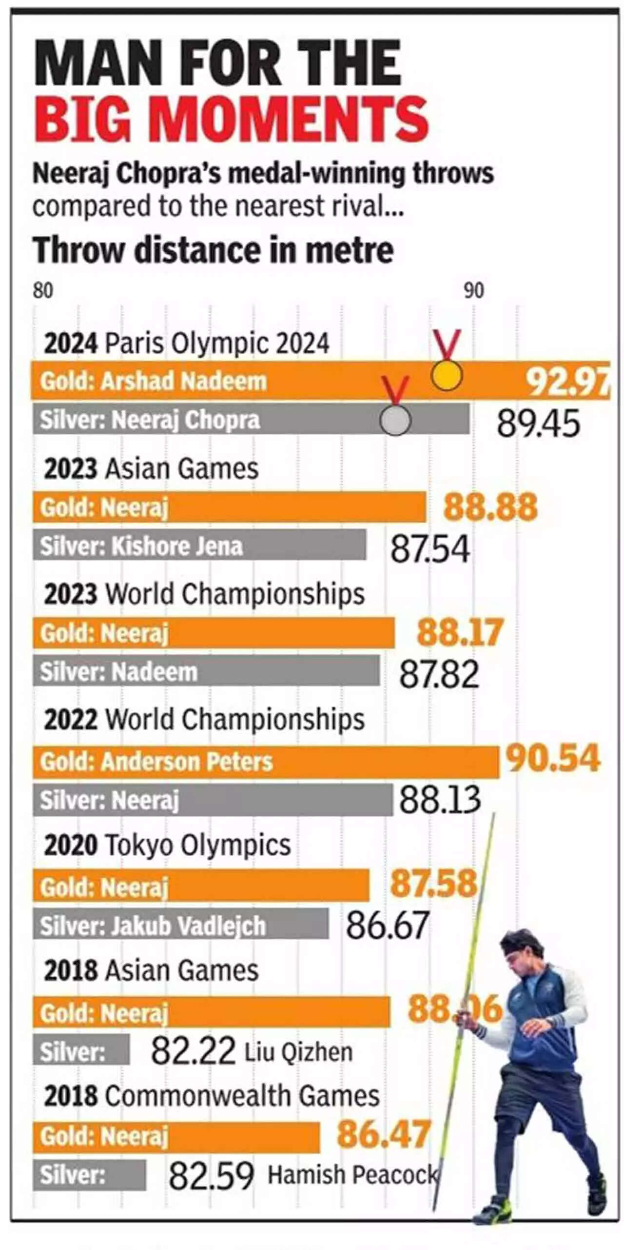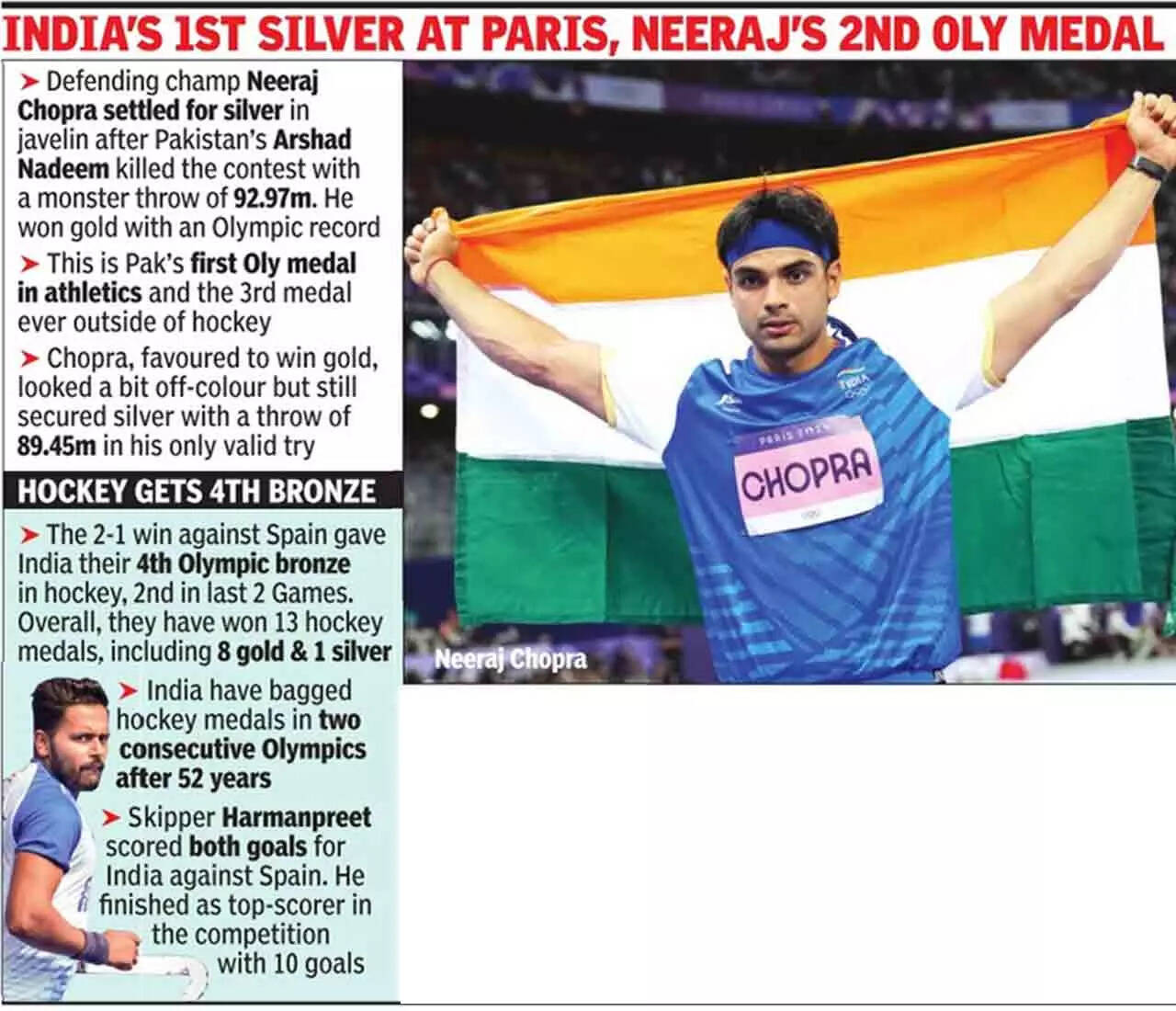 Chopra was looking to become the fifth athlete in the history of the Games to defend the men's javelin throw Olympic title. He failed to do that but with the silver here, he has gone a step ahead of other Indian Olympians.