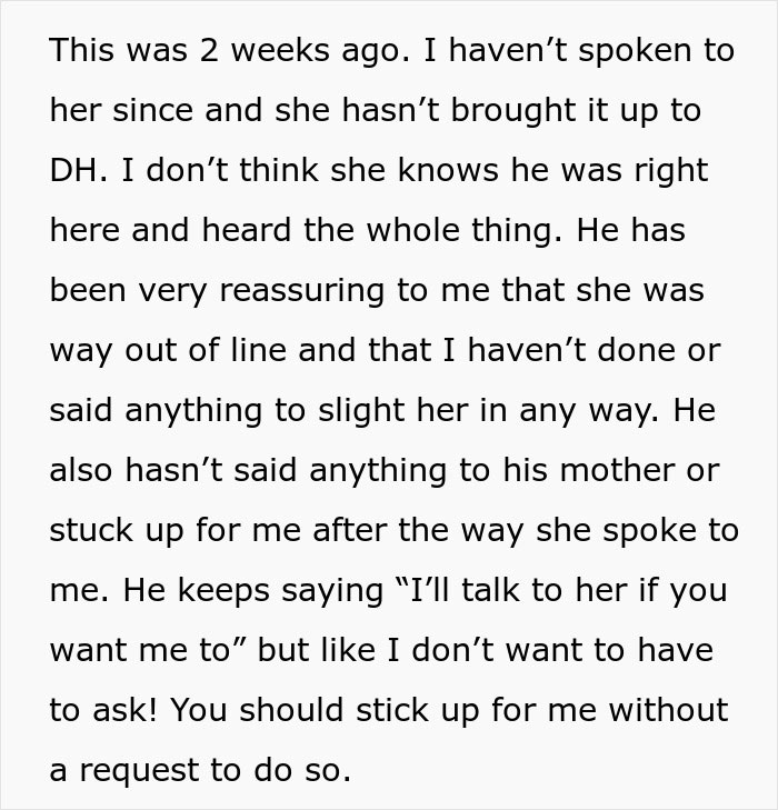 People who read the woman’s story were horrified by her mother-in-law’s behavior