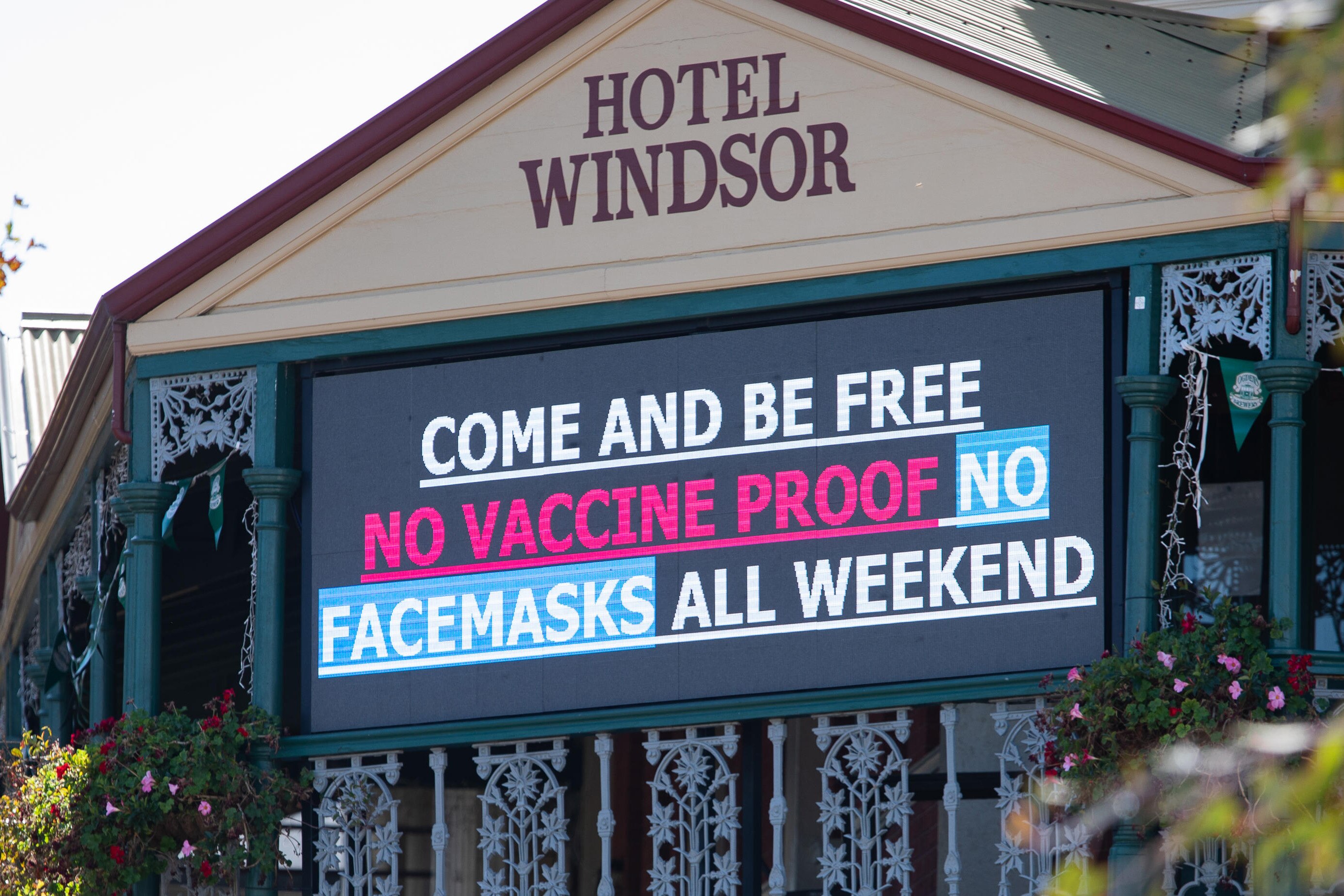 A Perth pub shows a sign celebrating the end of the proof-of-vaccination mandate in May. (ABC News: Keane Bourke)
