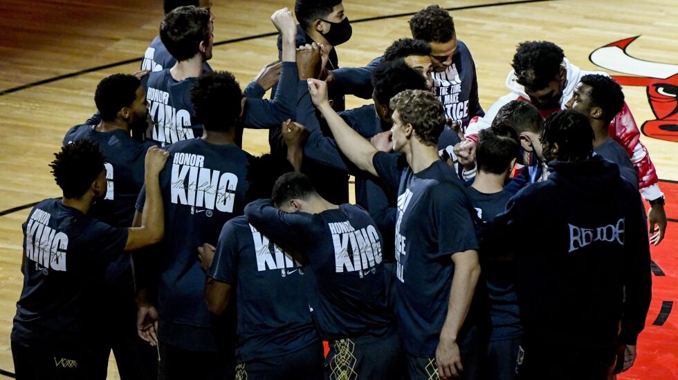 Two thousand miles away, same night, in another NBA arena, the Warriors and the Pelicans did the same. Some players entered the court in “Honor King” shooting shirts over their jerseys. Again, this is five days before the NBA has its own leaguewide version of an MLK celebration, with 11 games slated to be played recognizing the man who created more equality-driven change than any single human being has ever been able to do in this country.