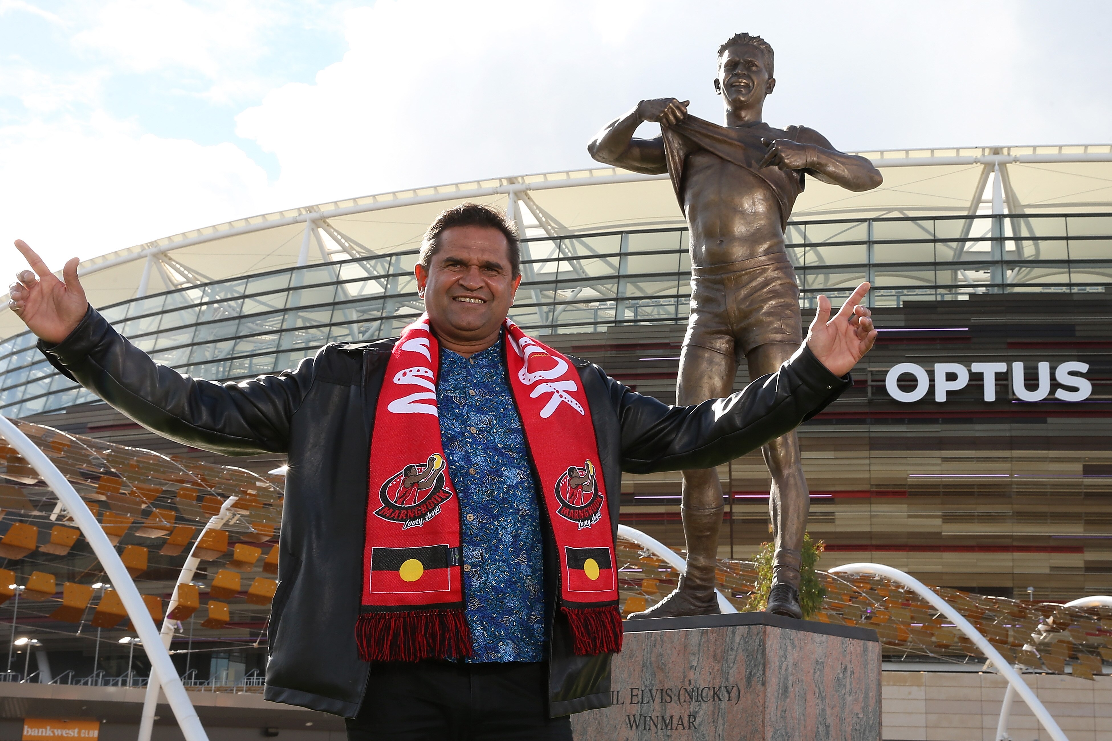 There was a statue of West Australian native Winmar pointing to his stomach erected outside Perth Stadium in 2019.