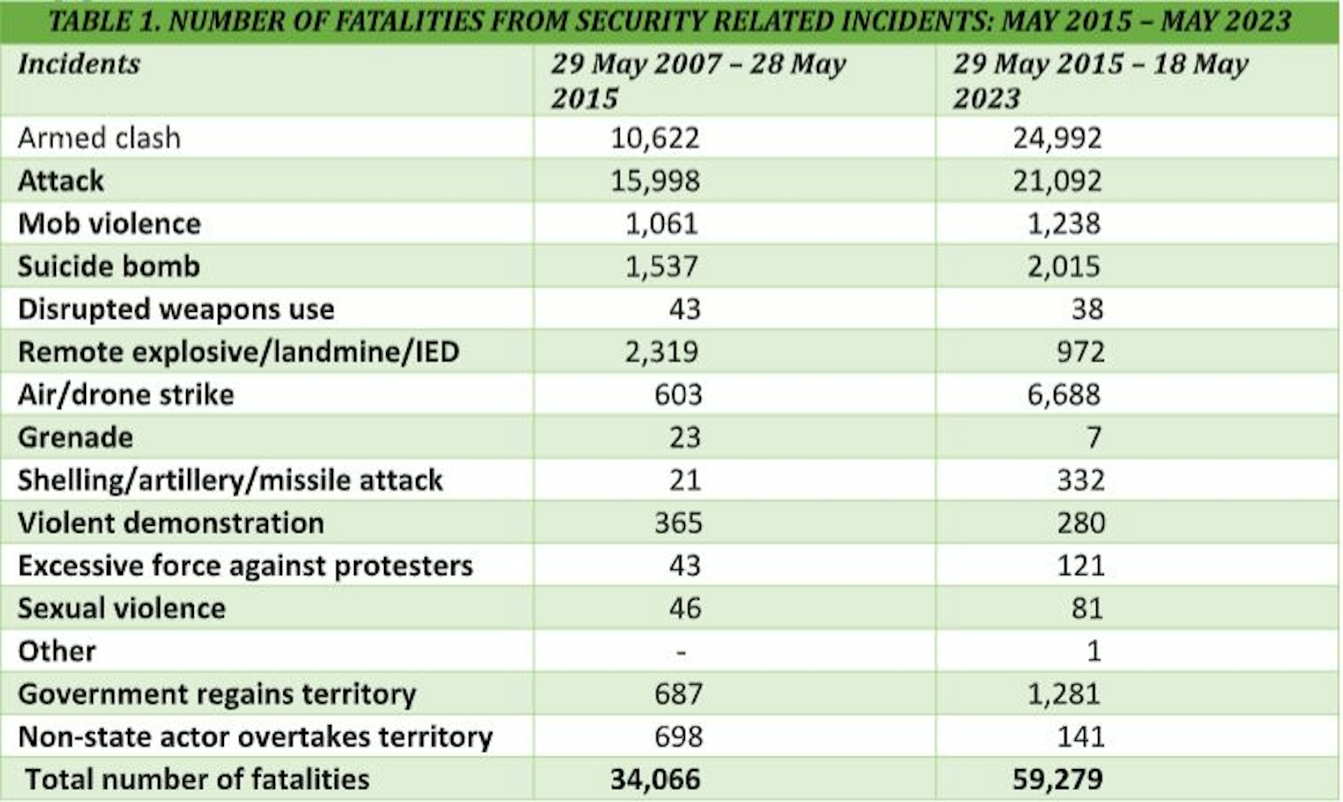 The security situation in Nigeria has deteriorated over the past eight years. Every region of the country is affected. Data compiled by this author, from the Armed Conflict Location & Event Data Project shows that there were 59,279 fatalities from security related incidents between 29 May 2015 when President Buhari assumed office and 18 May 2023. This is opposed to 34,066 of such fatalities recorded between 29 May 2007 and 28 May 2015. (See table 1)