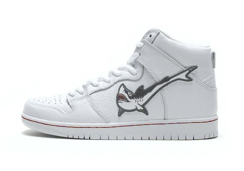 The Dunk High “Great White Shark” follows the lead of 2019’s black “Oski Shark” with a Swoosh that’s transformed into a detailed patch of the namesake predator. This swap is the sort of thing you typically only find on bootleg (or custom) sneakers, but Nike has gone all out for one of the most exciting young skateboarders in the sport.