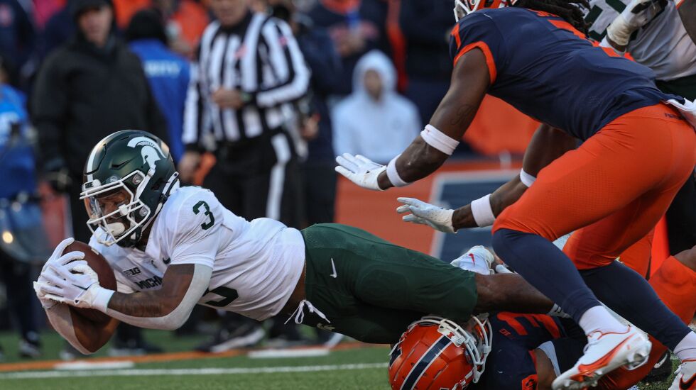 Spartans wideout Jayden Reed got loose for a 16-yard touchdown reception for a 23-7 lead with 2:57 to go and the defense did enough to halt a late comeback effort. Quarterback Tommy DeVito and the Illini (7-2, 4-2 Big Ten) stalled at the Spartans’ 25 when time expired.