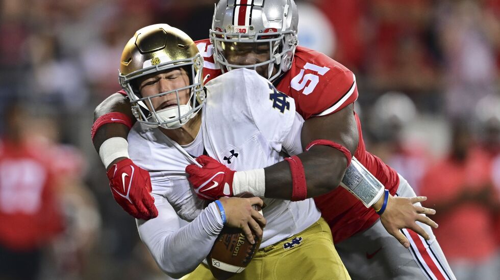 Looked good in game one. The Irish managed just 253 yards and punted on their last six possessions. Tommy Eichenberg had two of Ohio State’s three sacks.